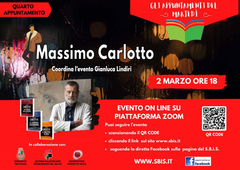 Martedì 2 Marzo alle ore 18.00 Gianluca Lindiri incontrerà Massimo Carlotto, uno dei migliori scrittori noir a livello internazionale, che parlerà della serie tv “L’Alligatore” (disponibile su RaiPlay) con protagonista Marco Buratti, personaggio della sua omonima saga letteraria insieme ai suoi compagni d’avventura, Beniamino Rossini e Max “la Memoria”.