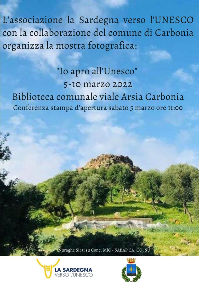 Dal 5 al 10 marzo, il Comune di Carbonia ospiterà la mostra fotografica “Io apro all’Unesco”, organizzata dall’Associazione La Sardegna verso l’Unesco, con la collaborazione dell’Amministrazione Comunale. L’inaugurazione è in programma sabato 5 marzo alle ore 11:00.