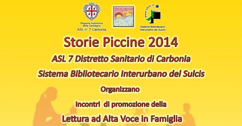 La ASL n. 7 Distretto Sanitario di Carbonia e il Sistema Bibliotecario Interurbano del Sulcis , dal 10 al 16 Marzo, aderiranno congiuntamente all’iniziativa a carattere nazionale “Storie Piccine”, che promuove la pratica della lettura ad alta voce nei luoghi frequentati dalle famiglie dei bambini in età prescolare.