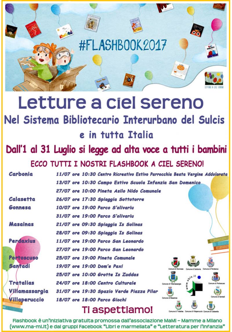 Nel mese di luglio, si replica l’iniziativa di promozione della lettura a carattere nazionale: flashbook Letture a ciel sereno - flashmob dedicato alla letteratura per l’infanzia. (https://www.facebook.com/flashbook.italia/)