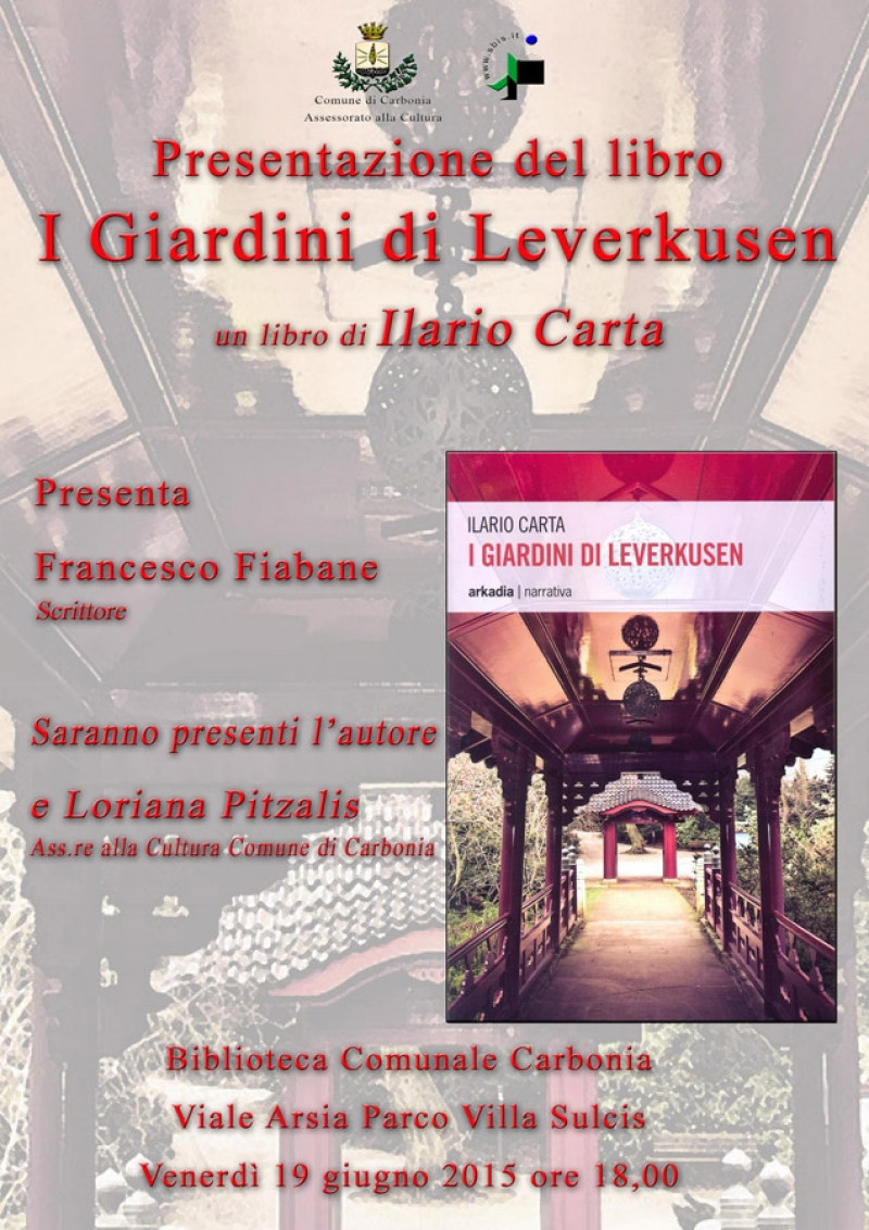 Venerdì 19 giugno 2015, presso la Biblioteca Comunale di Carbonia in viale Arsia, alle ore 18.00 si terrà la presentazione del libro "I giardini di Leverkusen" di Ilario Carta.