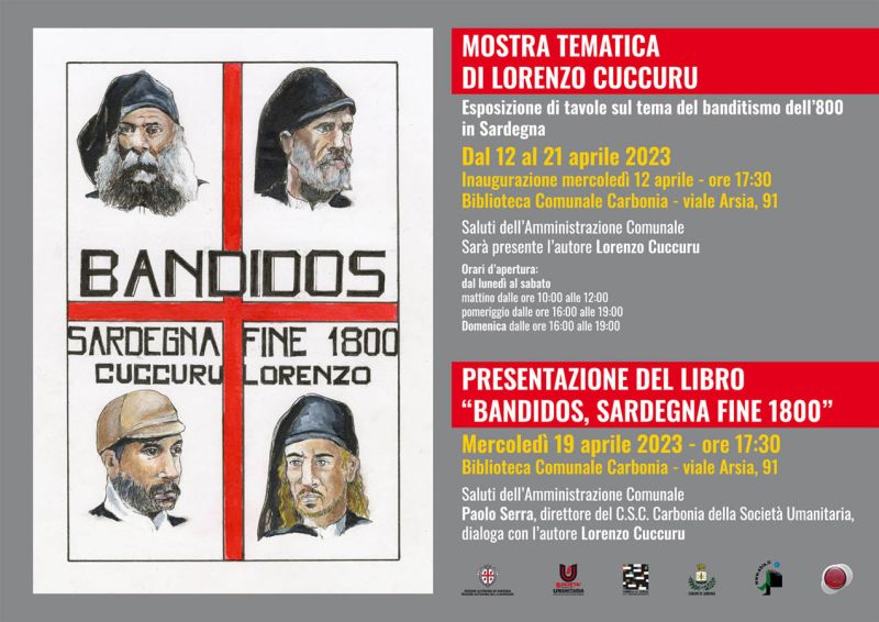 Presso la sala mostre della Biblioteca Comunale di Carbonia, fino al 21 Aprile dalle 10:00 alle 12:00 e dalle 16:00 alle 19:00, sarà possibile visitare l’ esposizione delle tavole illustrate, realizzate dall’Autore del libro, inaugurata il 12 Aprile, anch’essa intitolata Bandidos.