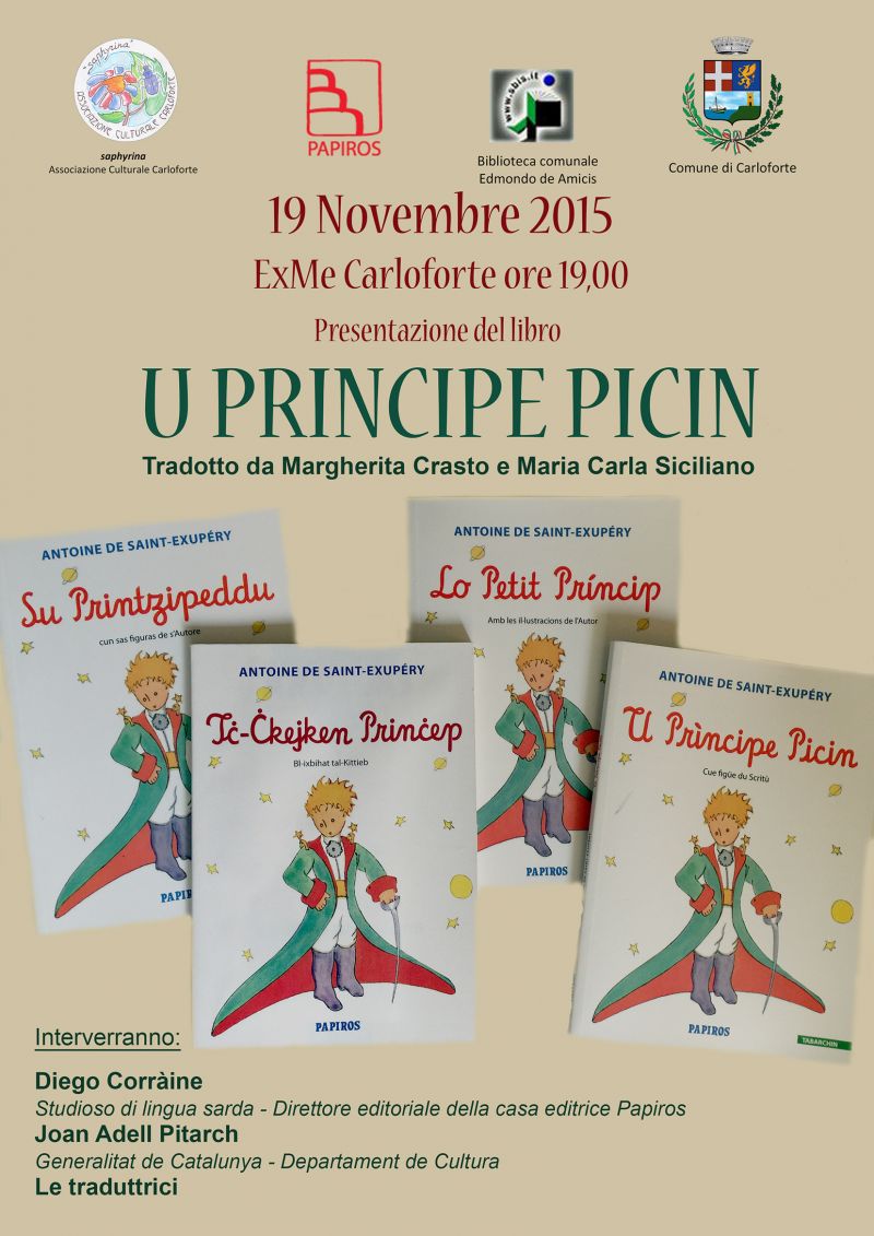 Uno dei libri più tradotti in tutto il mondo ora anche in tabarchino. La presentazione si terrà giovedì 19 novembre alle 19,00 nei locali della Biblioteca. In concomitanza verrà allestita una mostra sulla lingua catalana, visitabile dal 18 al 30 novembre.
